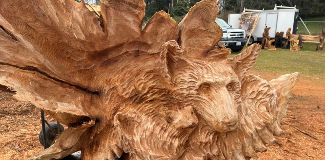 Based in the Pacific Northwest, Hayden Wright is a master wood sculptor whose work bridges the raw power of chainsaw artistry with refined craftsmanship and design. Traveling across the U.S. and abroad, he creates bold, one-of-a-kind sculptures for discerning private collectors, public spaces, and international competitions.